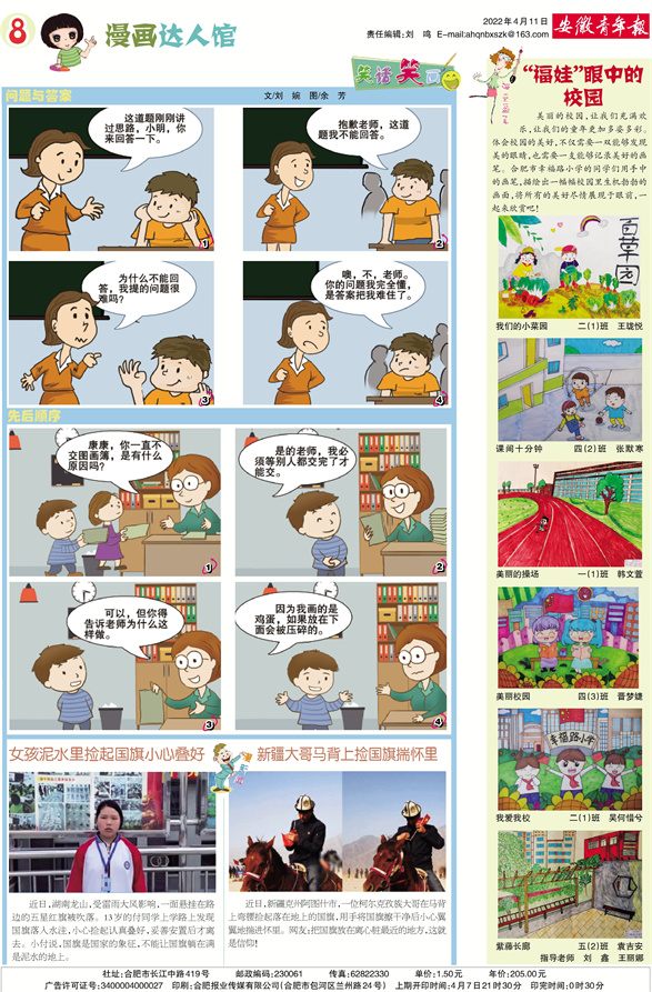《安徽青年报·学生周刊》励志启智,开阔视野,净化心灵,陶冶情操,参与互动,集新闻性、知识性、趣味性、互动性为一体,是小学生成长的良师益友、参与互动的平台、沟通老师家长的纽带。