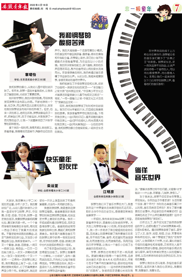 《安徽青年报·学生周刊》励志启智,开阔视野,净化心灵,陶冶情操,参与互动,集新闻性、知识性、趣味性、互动性为一体,是小学生成长的良师益友、参与互动的平台、沟通老师家长的纽带。
