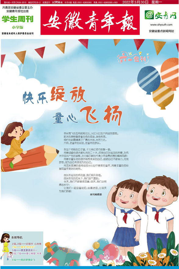《安徽青年报·学生周刊》励志启智,开阔视野,净化心灵,陶冶情操,参与互动,集新闻性、知识性、趣味性、互动性为一体,是小学生成长的良师益友、参与互动的平台、沟通老师家长的纽带。