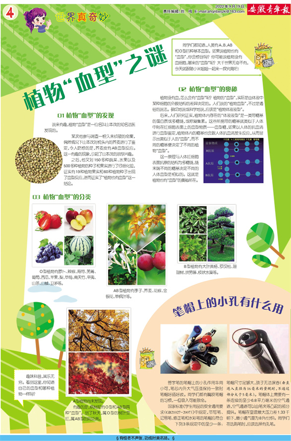 植物“血型”之谜 笔帽上的小孔有什么用