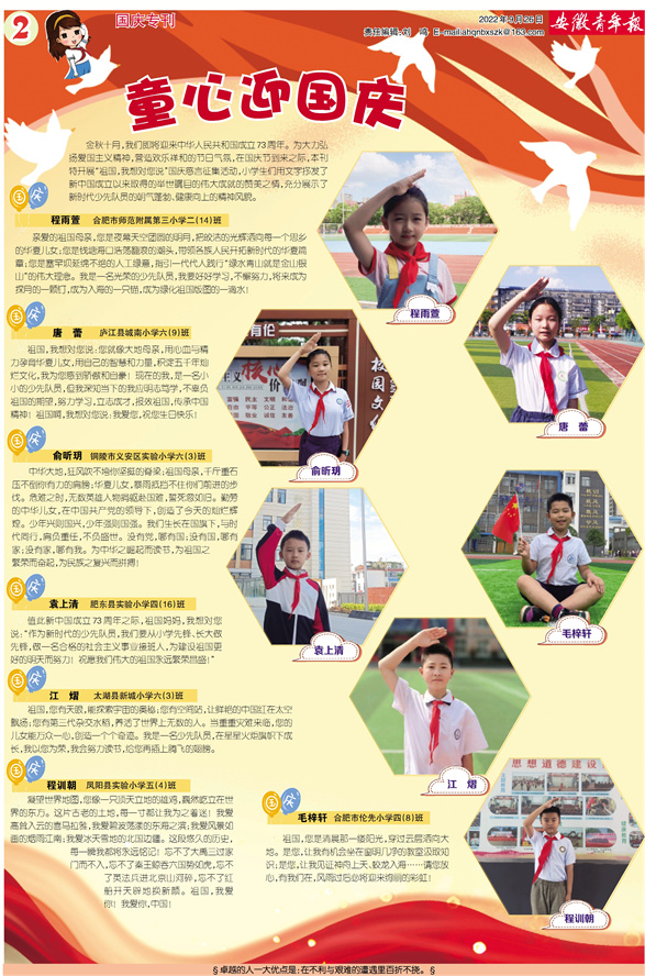 《安徽青年报·学生周刊》励志启智,开阔视野,净化心灵,陶冶情操,参与互动,集新闻性、知识性、趣味性、互动性为一体,是小学生成长的良师益友、参与互动的平台、沟通老师家长的纽带。