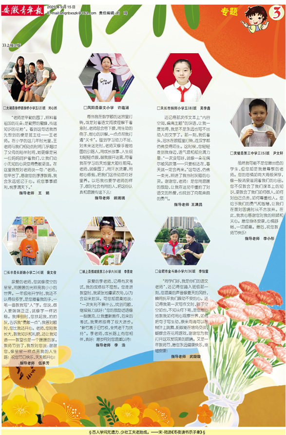 《安徽青年报·学生周刊》励志启智,开阔视野,净化心灵,陶冶情操,参与互动,集新闻性、知识性、趣味性、互动性为一体,是小学生成长的良师益友、参与互动的平台、沟通老师家长的纽带。