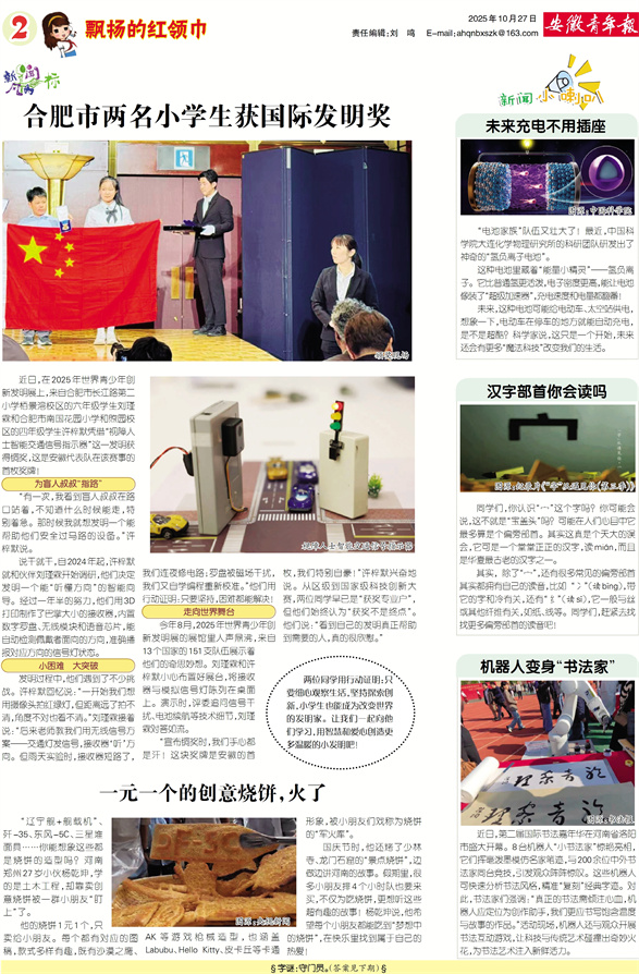 合肥市两名小学生获国际发明奖 一元一个的创意烧饼,火了 新闻小喇叭