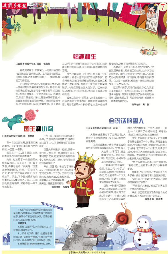 蝎趣横生 国王和小鸟 会说话的雪人 “奇幻岛”栏目约稿函