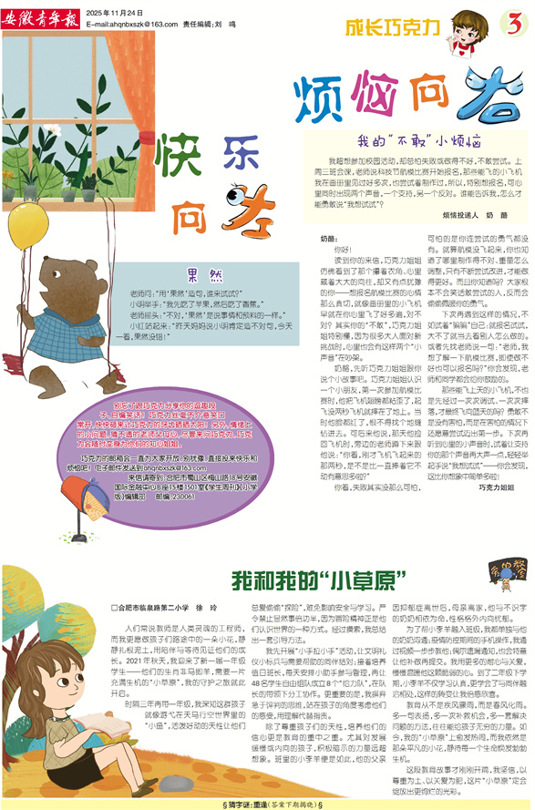 《安徽青年报·学生周刊》励志启智,开阔视野,净化心灵,陶冶情操,参与互动,集新闻性、知识性、趣味性、互动性为一体,是小学生成长的良师益友、参与互动的平台、沟通老师家长的纽带。