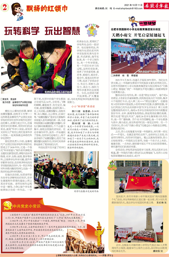 据社团负责人介绍,金寨现代产业园区实验学校科学制作社团成立于2020年秋,它是一个依托“科学面壁人”制作系列课程为主题的创新型社团,课程内容涉及物理、化学、生物、地理、数学等学科,以培养学生科学兴趣、提升科学素养为宗旨,在日常多样化的动手动脑实践活动中,为一到五年级对科学感兴趣的同学们,创造一个良好的走近科学的契机。