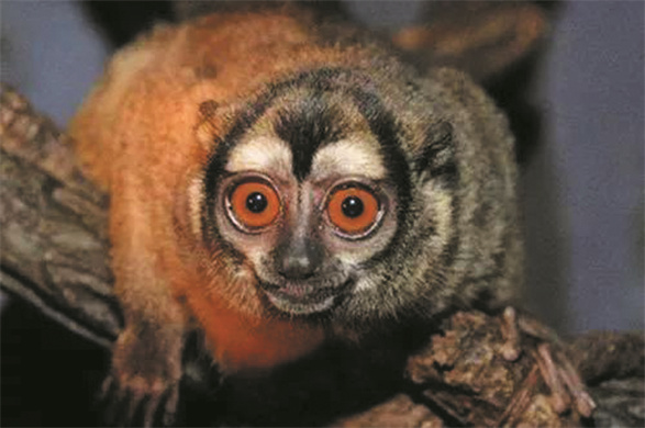 夜猴也被称为“猫头鹰猴”,因为它像猫头鹰一样在夜晚觅食,白天睡觉,而且拥有一双又大又圆的眼睛,具有良好的夜间视觉能力。