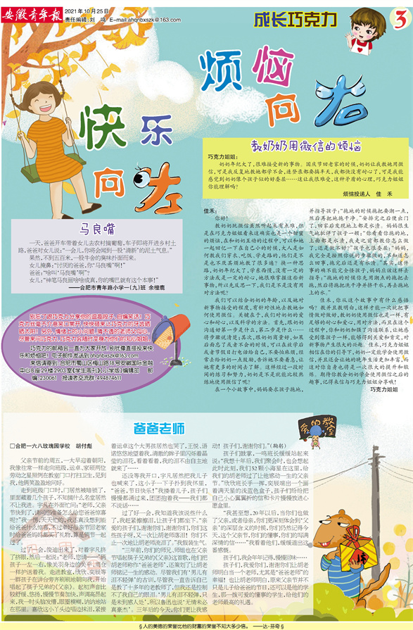 佳禾,你从这个故事中有什么感悟吗?教并且教明白,这样才能一次就把事情做对做好,教奶奶使用微信也是一样,有足够的耐心和爱心,用对方法,而且在这个过程中,你和奶奶加强了沟通联系,让她感受到像孩子一样,能够得到关爱和肯定,对新事物产生很大的兴趣。佳禾,巧克力姐姐相信在你的引导下,奶奶一定能学会使用微信,并且还会让她的晚年生活更加丰富,而这对你自身也将是一次很大的提升和锻炼。期待你教会奶奶学会使用微信之后的趣事,记得来信与巧克力姐姐分享哦!