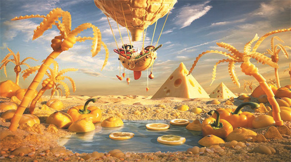 炫NEWS 小食物 大世界 伦敦摄影师Carl Warner将面包、西兰花、番茄、土豆、黄瓜、巧克力、糖果、牛肉、海鲜……布置成景致,变成童话里的样子,拍摄出惊艳的静物风景。精妙的搭配让整个场景现实感十足,细节的把控丝毫不会让人感觉刻意和做作,食物的形状和颜色都被摄影师化作“风光大片”中的元素,大饱眼福的同时又让人垂涎三尺。