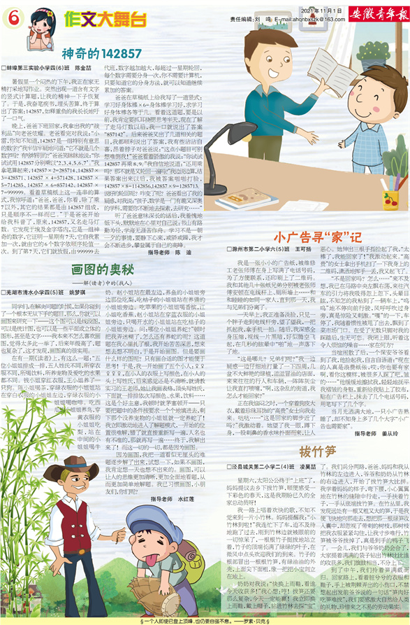 《安徽青年报·学生周刊》励志启智,开阔视野,净化心灵,陶冶情操,参与互动,集新闻性、知识性、趣味性、互动性为一体,是小学生成长的良师益友、参与互动的平台、沟通老师家长的纽带。