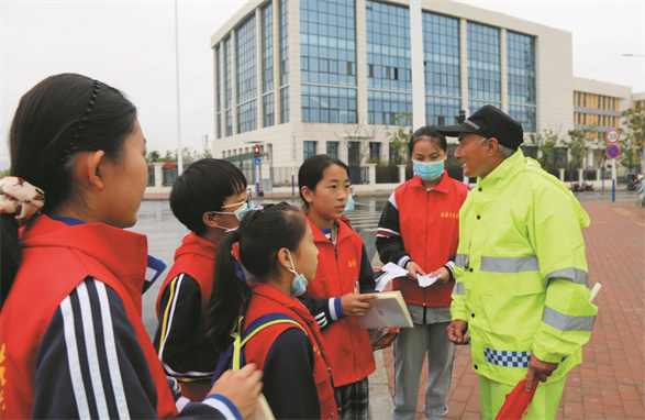 学生记者们采访交警