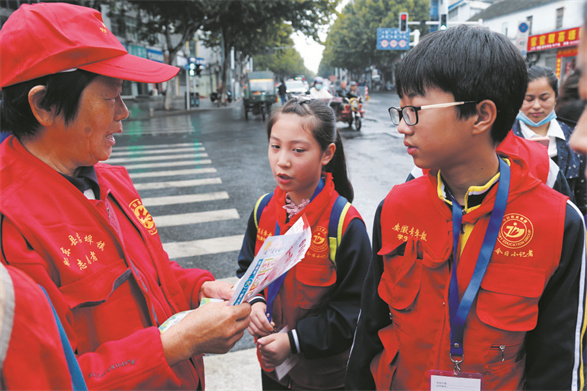 学生记者采访文明劝导员