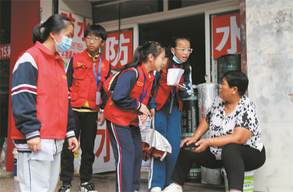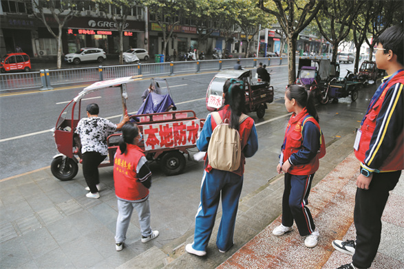 学生记者在街头文明劝导