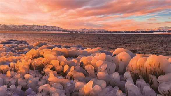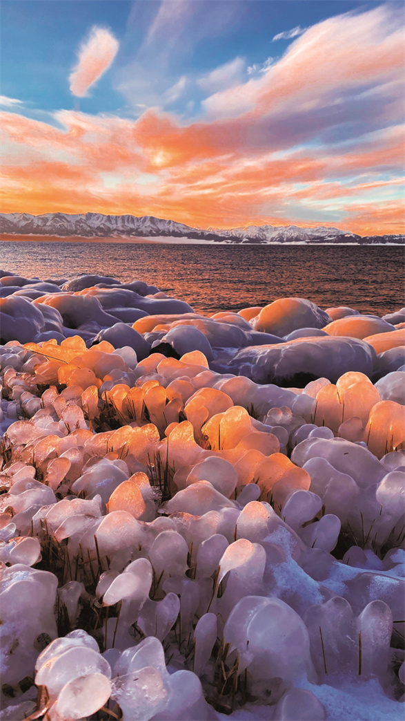 炫NEWS 醉美冬日赛里木湖 新疆赛里木湖像一颗璀璨的蓝宝石高悬于西天山之间的断陷盆地中,群山环绕、天水相映。冬日里的赛里木湖银装素裹,雪涌水凝,葱翠的苍松与洁白的雪交相辉映,构成一派北国林海雪原的壮阔景色,就连猫猫都在湖边好不惬意!