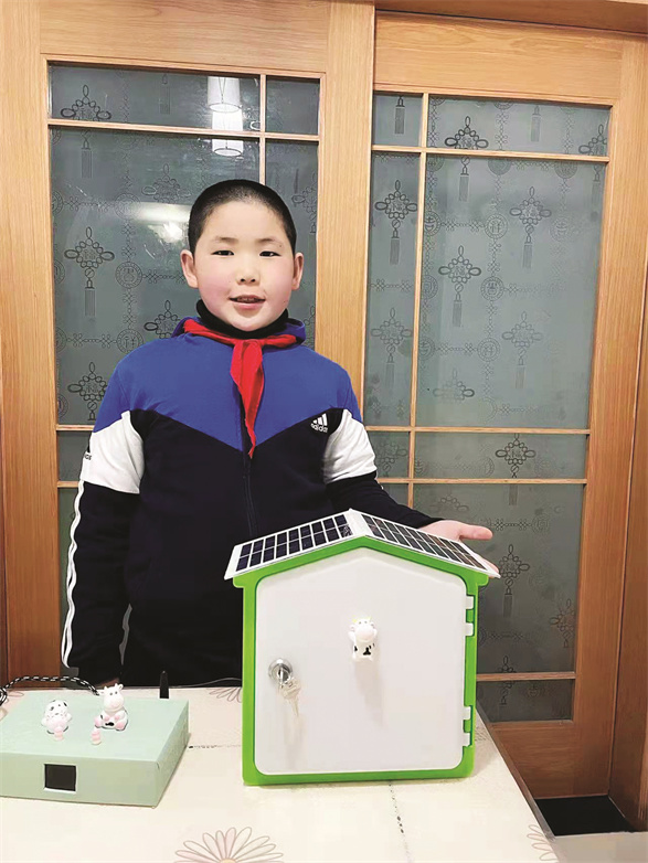 科学家也一定是矢志不移的人。有了创新点后,我报告给老师,老师也赞同我的创意。于是我们就开始设计图纸,网上购买部件,请老师帮忙制作模型。第一次模型制作好后,我们开始调试工作,可是总觉得少了点什么,可是就是想不起来。我回到家,吃饭也想,睡觉也想。后来去乡下爷爷家,看到了路边的太阳能路灯,我豁然开朗。原来是少了持续性电源,在实际的工作环境中,电源是必须解决的,太阳能就是一个很好的能源。于是我在老师的指导下设计了太阳能的“小屋顶”。这个设计最终也获得了专家的肯定。