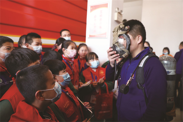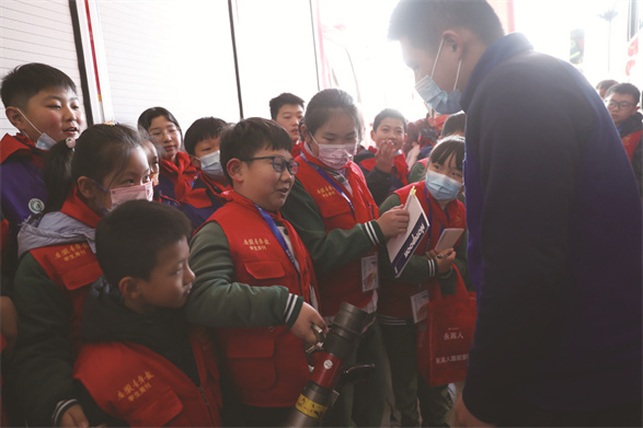 有这样一群人,他们被称为“烈火金刚”“救火英雄”,面对急难险重的任务他们必须豁得出来顶得上去,承担着常人承受不来的责任,冲在一线,第一时间抵达现场。他们就是身着“火焰蓝”服装的消防员!为了进一步提升广大青少年的消防意识,体会消防员工作的不易,2021年12月20日,来自合肥市临泉路第二小学的11名学生记者代表走进合肥市瑶海区消防救援大队,零距离接触“和平英雄”,参观消防器材、学习消防知识,用实际行动向消防员致敬。