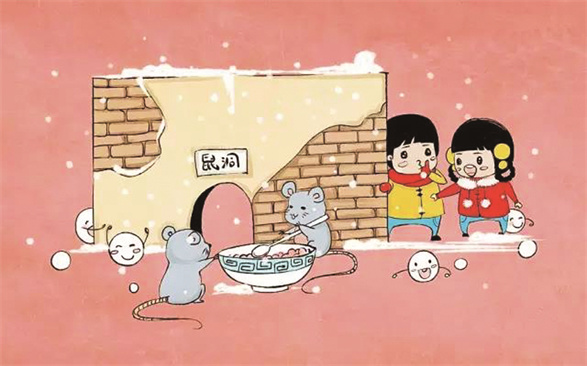 养蚕的人家在正月十五熬上一大锅黏糊糊的粥,有的还在上面盖上一层肉,放到老鼠出没的顶棚、墙角,一边念念有词祈求老鼠不再吃蚕宝宝。传说这样做,本年的老鼠就不会吃蚕宝宝了。