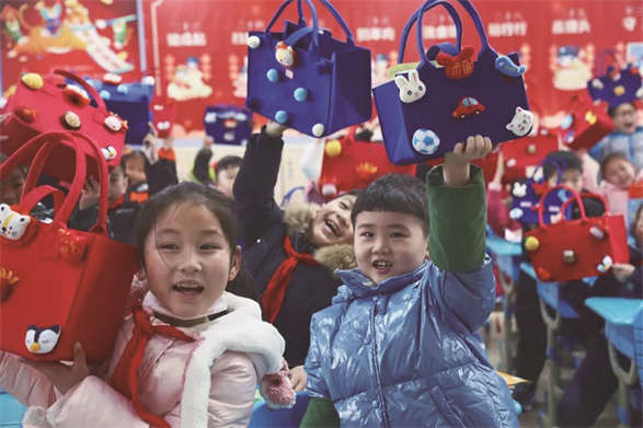 合肥市朝霞小学 “盲盒大礼包”开启快乐新学期 □许 燕 合肥市朝霞小学在春季学期返校日给学生们准备了特别的礼物,充满年味的板报设计、整齐摆放的教室桌椅,提前分好有序摆放在桌上的新课本,都彰显着浓厚的新年新气象。当然最受学生们喜欢的就是那一个个新年“盲盒大礼包”。