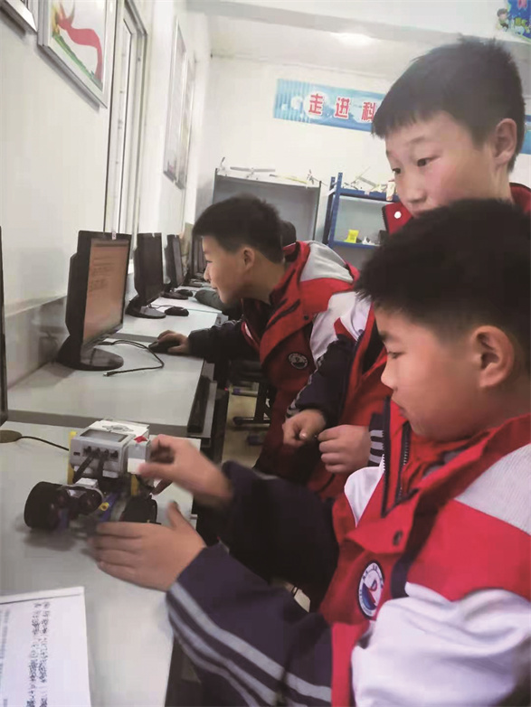 快乐三点半 趣课程 为成长赋能 □黄世凤 江炎魁 每天下午3点半,当你走进肥东县白衣小学,你会发现这里热闹非凡,操场上、教室内里,同学们在老师们的带领下正进行着丰富多彩的活动,这就是“双减”带来的最明显的变化。“双减”政策下,白衣小学开设了软笔书法、国画、啦啦操、趣味小足球、小主持人、儿童画、动漫绘画、线描画、口才与演讲、珠心算等个性化课程。每个个性化课程的时间都为一个半小时,在这90分钟内,同学们会做些什么呢?又会有什么样的收获呢?对于“双减”政策他们有什么看法?就让我们走进学校,听听同学们怎么说! 黄天晨:字里行间的妙趣横生 学校的个性化课程,我参加了软笔书法课程。指导老师特别亲切,首先教授我们写简单的“一”字,当班上的每个人都写得好看又端正时,就只有我一个人写得歪歪扭扭,我想到了放弃,可指导老师让我坚持下去,并再次给我指导,还让我坚持在家练习。我也是按照老师的话坚持练习,练的字若是遇到不对称,或是不均匀等问题时,我都会重写,直到我满意为止。后来,我渐渐掌握了握笔姿势,手也不怎么抖了,字也写得好看些了。到后来,开始写笔画较多的字,如晨、颜、藏等时,又让我犯难了。写这些字不仅仅要上下对齐,若是有一笔弯钩,写得太过于细,或太过于粗,也会毁了这个字的整体,我又打起了退堂鼓。这时,指导教师和一同在书法班的同学们知道了我的困难后,都上来安慰我,帮助我,鼓励我。指导教师说:“练习书法,关键在于一个人的心态。静下心来,仿佛你的眼前是一眼清泉……我相信,你一定能写好的。”听完了指导教师的话后,我深受感动。于是,我便又练习了起来。第一次,第二次,也许我写得并不怎么规范。可到了后来,我的毛笔字越来越有形,越来越好看。 现在的我,不仅硬笔字写得好,软笔字也很好看,这都多亏了学校开展的软笔课程,让我在90分钟内,不仅体会到了写软笔书法时的快乐,也让我体会到了什么是友谊和师生情谊。 江皓然:快乐成长齐收获 上学期我第一次去上图形化编程时的情景,现在仍历历在目。记得那天第一次上课,我和同学们走进计算机室,看到陌生的老师,当时我的心情很复杂,有对新鲜事物的好奇,也有对自己能否学好图形化编程的忐忑。但当老师开始讲解时,他的亲切耐心,一下子就将我的情绪冲得烟消云散,我只顾着像海绵吸水一样吸收新知识了。老师先教会我们打开scratch软件,介绍了里面各个图标的作用,又说明了一些比较常用的积木块的逻辑,然后向我们展示了一只来回跑动的小猫。讲解完之后,老师让我们自己试着做一下,我又新奇又好奇,拖动鼠标找到“移动10步”“碰到边缘就反弹”“重复执行”等积木块组合在一起,点了一下小绿旗,小猫真的开始在两条边之间跑来跑去。“耶!”当时我高兴极了。 那天回到家,我向家里人讲述了课上发生的有趣的事情。当我说到有个同学,因为少加了一个积木块,导致小猫“飞”出舞台时,爸爸妈妈听着我的描述笑得合不拢嘴,我也忍不住笑了。后来爸爸妈妈成为了我在编程方面的头号粉丝,每次编程课后,总是跟在我后面听我描述课上的收获。他们非常支持我学编程,有了家人支持,我感觉我学编程更有干劲了,我还想继续往深了钻。学习了学校的个性化课程,我不仅是学到了技能,还收获了快乐,简直是好处多多呀!当然,这离不开老师们的辛勤付出,感谢学校让我们能有如此快乐的个性化课程! 殷志炫:激发兴趣与创造力 在没有实施双减之前,我是疲惫劳累的,每天完成作业要一个多小时,加之父母为我们报的各种课外辅导班等,加重了我们的学习负担,因此不得不减少了我们的睡眠时间,经常导致我们上课注意力不集中、打瞌睡、开小差等。实施双减后,我再也不用担心作业量多而导致缺乏睡眠时间,上课时我也会认真听讲,注意力集中,全程跟着老师的思维。我觉得这对我的帮助很大。 我的爱好课程是机器人编程,我在学校参加了编程个性化课程,上课我也会积极发言,认真拼建每一个机器人,有些加工困难的零件,我也会根据书目仔细寻找,将它完成,也不再像以前那样将它看作玩耍的“游戏”, 一定程度上激发了自己的学习兴趣和创造力。“双减”政策下,个性化课堂成为了我学习知识以及健康成长的乐园!