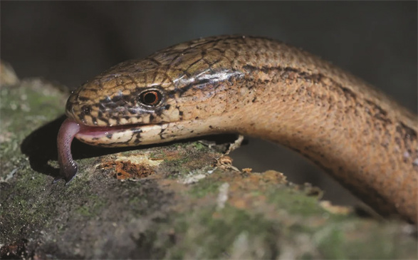 蛇蜥也会蛇形走位,还时不时吐出舌头,把蛇的动作模仿得惟妙惟肖。但它有时会“露馅”——蛇蜥会眨眼睛。而真正的蛇没有眼皮,不会眨眼,眼睛被一层透明的膜覆盖着。