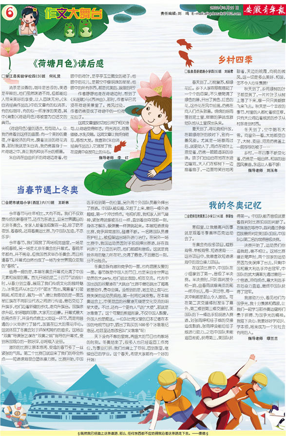 《安徽青年报·学生周刊》励志启智,开阔视野,净化心灵,陶冶情操,参与互动,集新闻性、知识性、趣味性、互动性为一体,是小学生成长的良师益友、参与互动的平台、沟通老师家长的纽带。