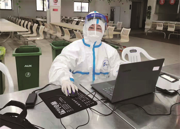 妈妈已经大半个月没有回家了,每每看到视频电话里的妈妈因长期戴口罩脸上勒出的印痕;为减少去卫生间而少喝水风干的嘴唇,想到妈妈因走路太多而浮肿的双腿,有时一天都顾不上吃饭,有时坐着都会睡着……我的心特别疼,但我更自豪我的妈妈在“疫”线。虽然她只是千千万万防疫工作者中的普通一员,但是在我的心里,她就是守护我们的英雄!