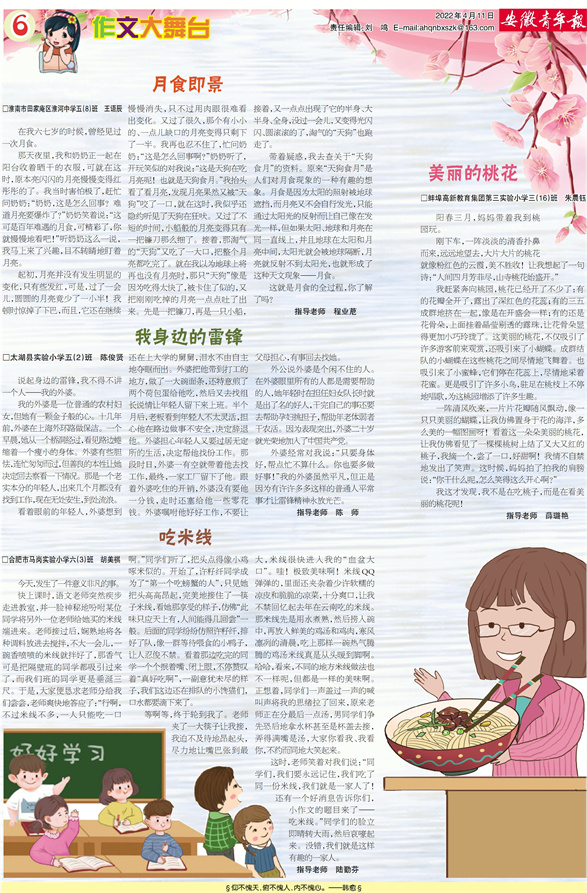 《安徽青年报·学生周刊》励志启智,开阔视野,净化心灵,陶冶情操,参与互动,集新闻性、知识性、趣味性、互动性为一体,是小学生成长的良师益友、参与互动的平台、沟通老师家长的纽带。