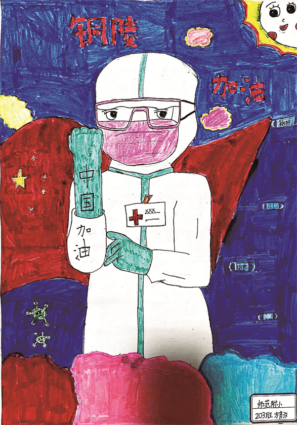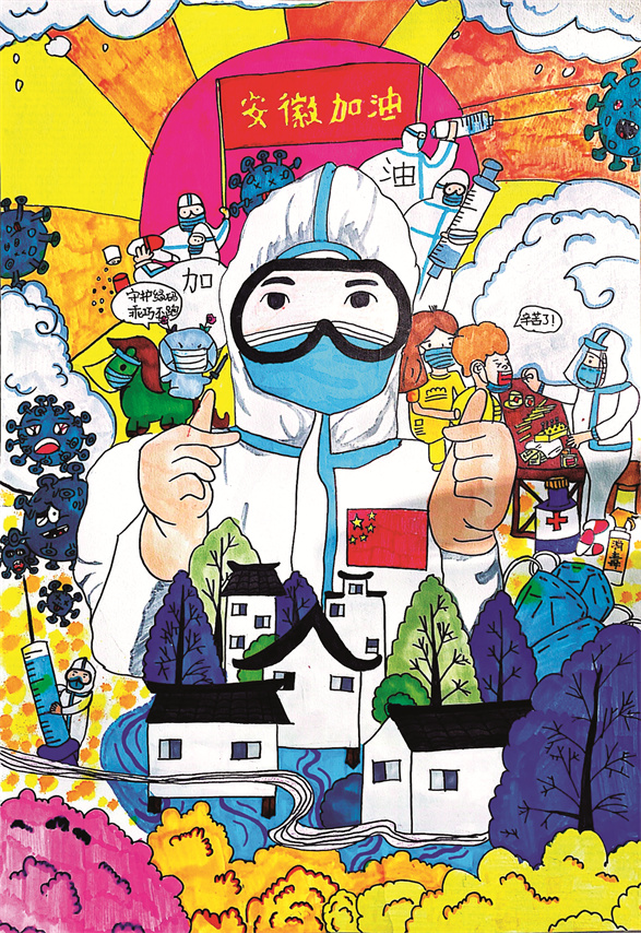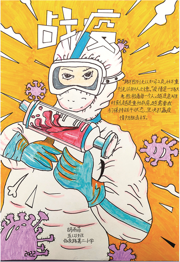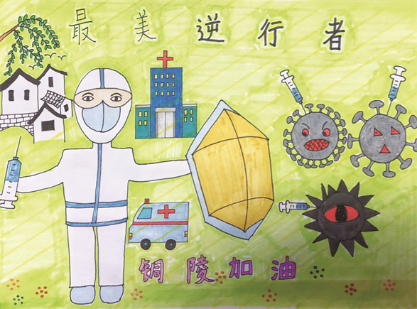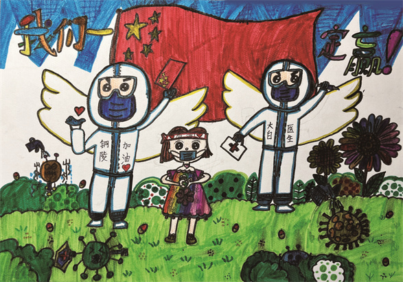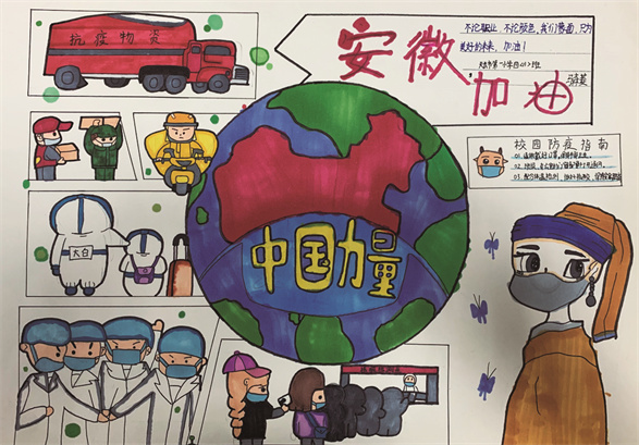 近日,新冠肺炎疫情防控形势严峻复杂,同学们和家长在做好自身防护的同时,通过画笔传递爱的力量,为奋战在防疫一线的人员加油,表达对战胜疫情的坚定信心。让我们同握画笔,留住印记,为抗疫加油!