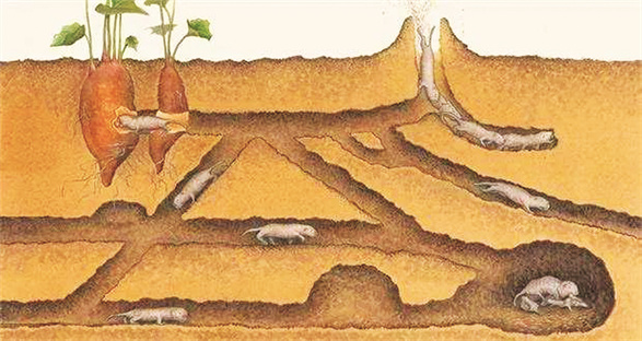 这些古怪的动物生活在地下巢穴里,其数量可多达100只。裸鼹鼠用不成比例的巨大牙齿挖洞。这些牙齿位于嘴唇前面而不是后面,这样,它们便不会吞下泥土。这种动物能活28年。