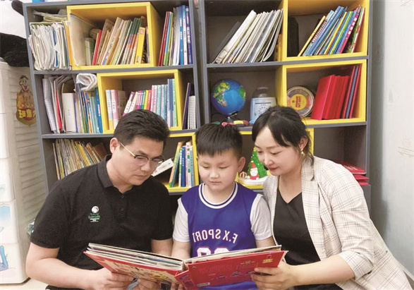 长丰县实验小学二(7)班的沈鑫同学有一个“宝藏”书架,书架上都是他珍藏的书品,他会经常和爸爸妈妈一起坐在书架前共同读一本书,一边阅读,一边畅聊书中的故事情节,“我最喜欢和爸爸妈妈一起读书,有趣的绘本,好玩的百科全书都是我们共读的书目,而且亲子阅读时光特别温馨。”
