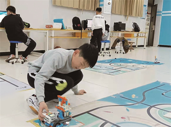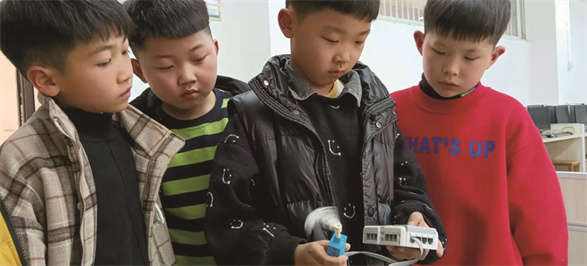 界首市第一小学机器人社团 玩转机器人 □黄世凤 刘 军 “我连续参加了三届机器人大赛,和机器人这个好朋友已经有了三年的接触,三年的学习让我对它有了更深的认识和了解,当然,它对我的成长也有着很深的影响。”这是界首市第一小学张明泽同学在参加学校科技社团后的感受。 据了解,学校从2010年就开始机器人社团的培训, 同学们对机器人学习的热情非常高,社团人数由之前十多人增加到现在六七十人,累积培训有几千人之多。每天课后,同学们总是在创客教室积极调试自己的机器人,他们个个身手不凡、思维敏捷,通过操控机器人,完成一项项高难度任务。 “做一个机器人,首先要有一个合理的构思,需要考虑到机器人如果遇到障碍物会是什么反应,也需要考虑如何保障机器人灵活地前进和后退。”张明泽同学在采访中这样介绍自己的创作过程,“我们也要为机器人编写出程序,如果地上的线不慎进入你的齿轮,使机器人不能正常运行,这时你需要仔细检查,作出处理来使它能够恢复自由的运行。” 开展机器人社团是界首市第一小学推进“双减”政策落地实施的重要载体之一,在这么多年的培训竞赛中成绩斐然,有很多社团成员获得县级奖、市级奖、省级奖,甚至国家级奖,学校党总支书记、校长陈坤说:“机器人社团具有很强的教育价值,它不仅提高了学生课外生活的趣味性,提升了他们的科学能力和动手能力,还不断提升了学生的综合能力。”就像社团成员李恺悦说的那样:“学习机器人让我有了集体荣誉感。在与队友合作的过程中,我学会了包容;在比赛的过程中,我懂得了胜不骄,败不馁。”