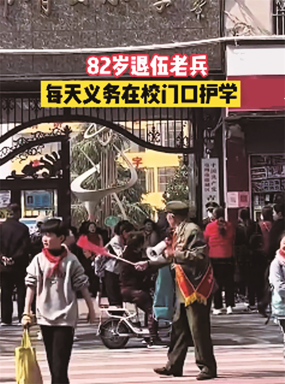 82岁退役老兵义务护学24年 近日,安徽亳州一则退役老兵义务护送小学生过马路的视频,引发网友点赞。拍摄者李先生称:老人身穿军装还戴着勋章,几乎每天都会到校门口吹着哨子护送学生们过马路。据悉,老人名叫张西军,今年82岁,曾获“中国好人”称号,而他做公益也24年了,张西军老人说:做公益就是想回报社会,感恩党。