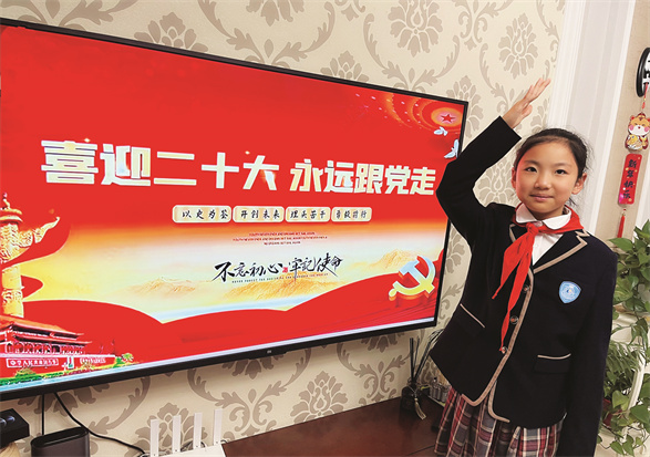 一代人有一代人的使命,一代人有一代人的担当。作为一名新时代好少年,我们要从小坚定听党话、跟党走的决心,修品行、练本领,努力成为社会主义事业的建设者和接班人。预祝党的二十大取得圆满成功!
