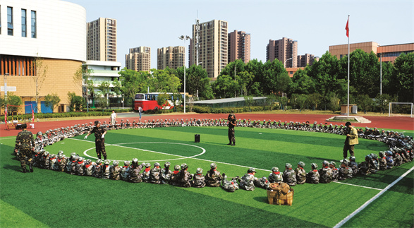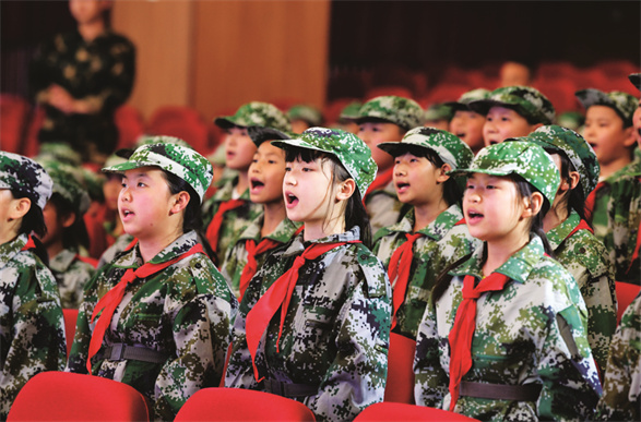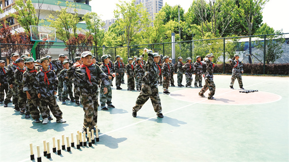 “稍息、立正、向前看、向后转……”伴随着教官一声声响亮的口号声,小小士兵们在瑶海区素质教育基地,开始了军事体验活动。他们投手榴弹、射击训练、攀岩、团队竞赛……个个积极参与,勇夺第一,不仅激发了大家的团队活力,还增强了他们的团队协作能力和责任感。结束了上午的军事体验活动后,下午,同学们期待已久的“十岁成长礼”如约而至。精彩的唱红歌、赛队列等环节将活动推向了高潮,用汗水和朝气碰撞出璀璨华彩。活动最后,全体学生立下十岁誓言,声声誓言响彻云霄。