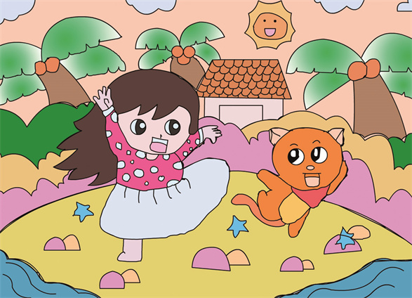 小女孩和猫 合肥市亳州路小学五(4)班 张雪茜 指导老师 王 菁
