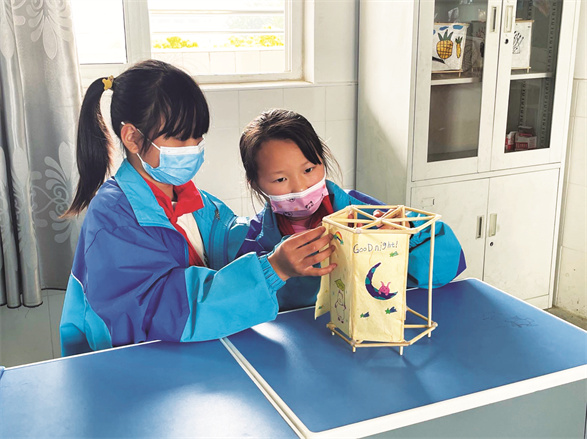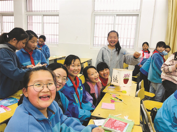 完成灯笼制作开心的同学们