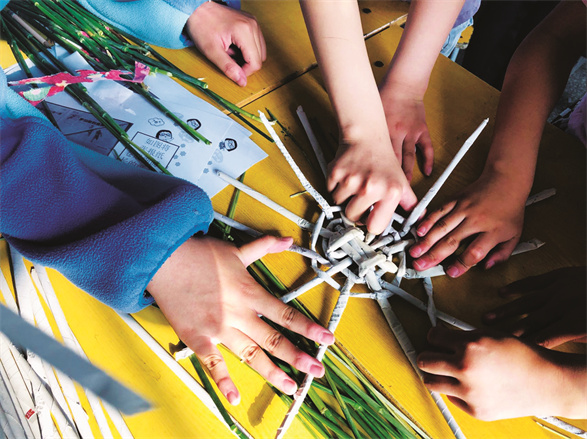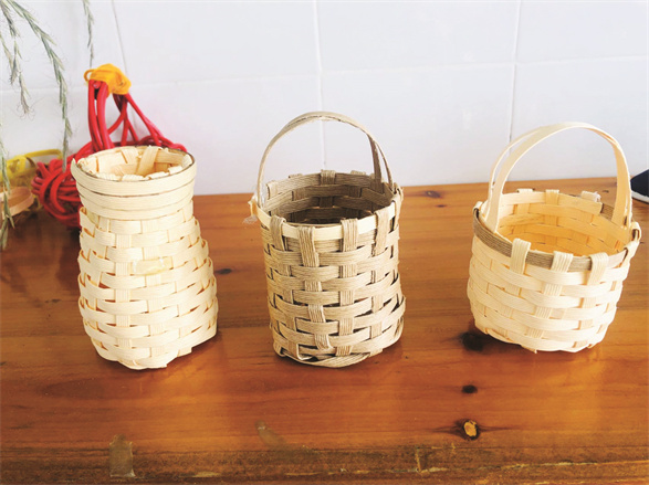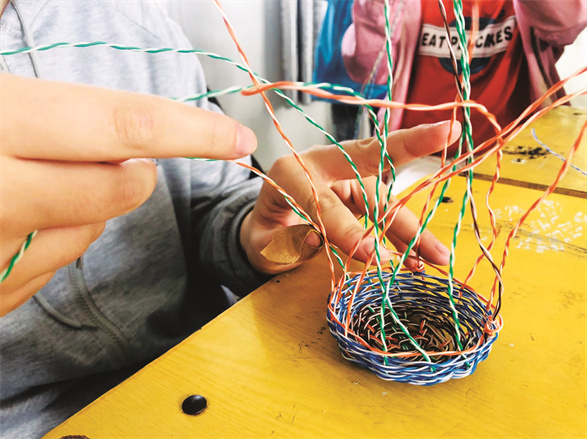 编织也是中华民族的传统工艺,在很多地方都有着手工编织的文化习俗。编织既需要有充分的耐心、细心,克服困难、坚韧不拔的意志,更需要有不断创新、探究的精神。据社团老师介绍,刚开始时,学生们编织的花篮歪歪扭扭,可经过一段时间以后,同学们越来越喜欢编织,编出的花篮也越来越精致美观。