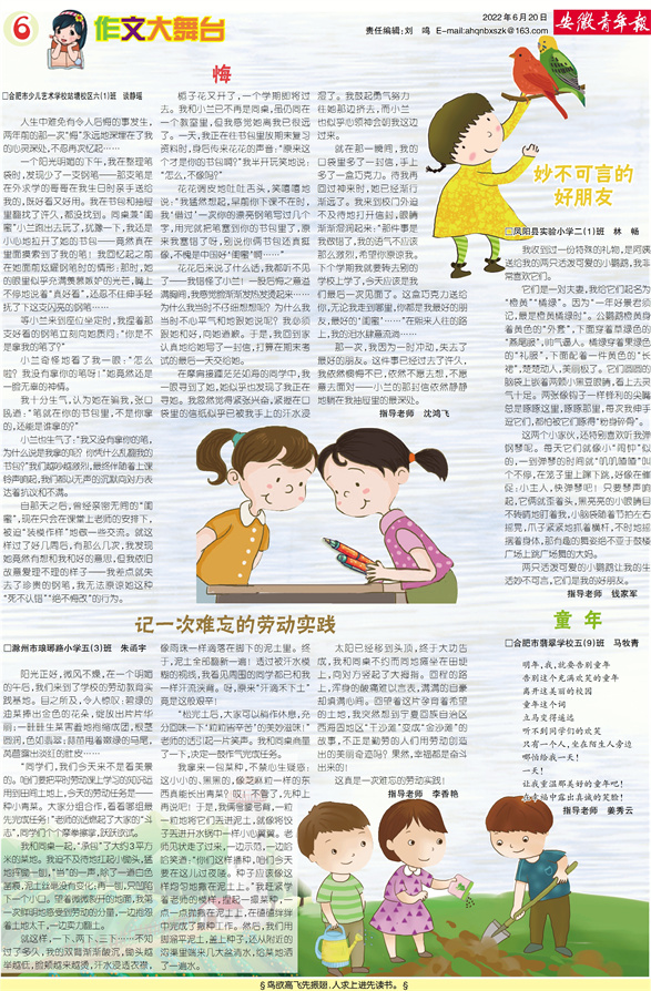 《安徽青年报·学生周刊》励志启智,开阔视野,净化心灵,陶冶情操,参与互动,集新闻性、知识性、趣味性、互动性为一体,是小学生成长的良师益友、参与互动的平台、沟通老师家长的纽带。