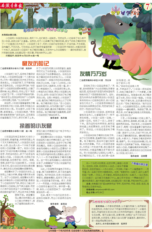 注意:来稿请注明“擂台参赛作品”字样,写清学校、年级、班级、姓名、指导老师以及联系电话。
