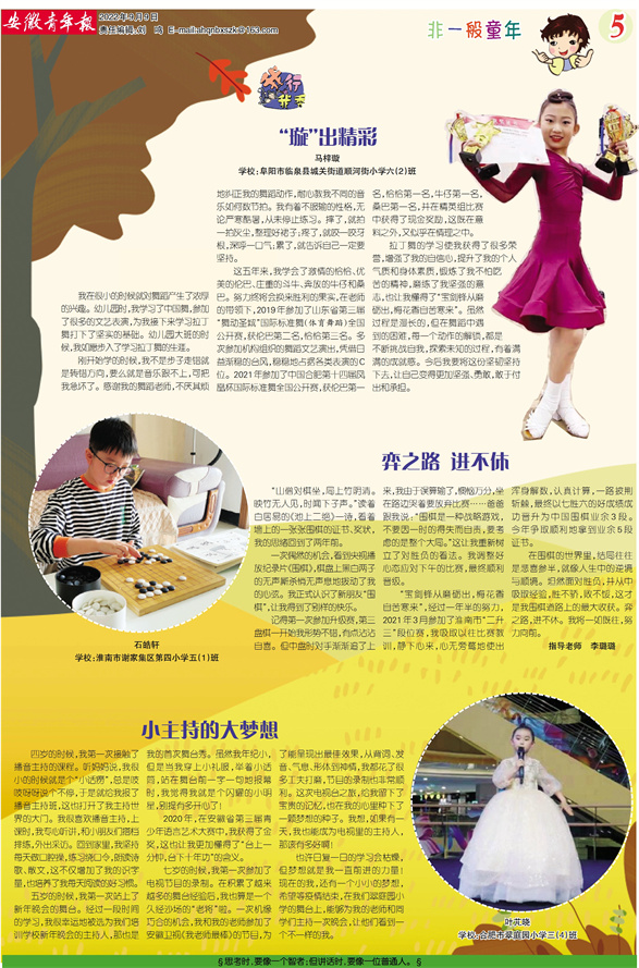 《安徽青年报·学生周刊》励志启智,开阔视野,净化心灵,陶冶情操,参与互动,集新闻性、知识性、趣味性、互动性为一体,是小学生成长的良师益友、参与互动的平台、沟通老师家长的纽带。