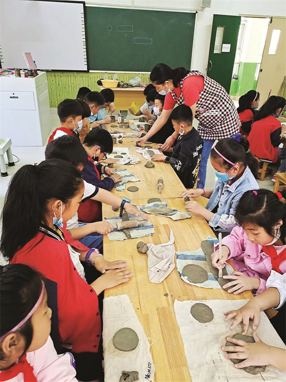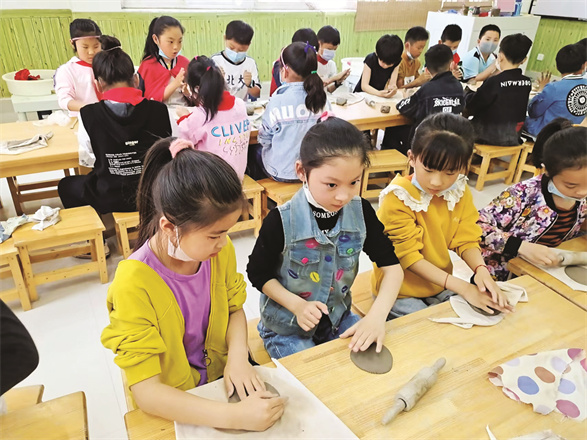 我型我塑 □黄世凤 吴晓霞 魅力社团 淮南市谢家集区第九小学陶艺社团 “制作这个手捏动物杯看似简单,其实在制作过程中还存在着很多奥秘,首先杯壁厚薄要均匀,其次粘贴的动物五官要牢固,防止烧制的时候脱落。同学们,现在让我们拿起桌子上的材料,一起开始制作手捏动物杯吧。”这是淮南市谢家集区第九小学的陶艺课现场,老师们正在给同学们上陶艺课。 小小双手捏出无限想象,块块泥巴塑出多彩生活。据了解,为丰富同学们的课后生活,淮南市谢家集区第九小学在2016年就开设了陶艺课程,在各级领导和专家的帮助下,在校内师生的共同努力下,被命名为“泥馨苑”的学校陶艺教室建成并投入使用。目前,陶艺课程实施环境优越,文化氛围浓郁。陶艺室配备有烧制电炉、拉坯机、陶泥转盘、陶泥等陶艺设备,并为同学们提供了基本的制陶工具等学具。 据学校陶艺室负责人常敏介绍,学校在三、四年级开设了陶艺课程,并且把每周两节陶艺课连排,最大限度地将时间进行整合,保证每星期每班充分的陶艺集体教学的时间。在教学内容上陶艺老师对拉坯成型和手捏成型两种陶艺制作都进行了教授。“孩子们对陶艺表现出了极高的热情和兴趣,每次上课都特别积极,他们认真学习,充分发挥自己的想象力,创作出新颖别致的陶艺作品。”常敏这样说。 “陶艺课上我认识了陶艺泥料,掌握了泥料的处理流程和方法,学习了揉泥的基本方法。还学会了手工制作的基本方法,当一件件作品展现在眼前时,大家都感到无比的震撼和欣慰。”四(1)班的王子墨同学这样分享她的经历。 据了解,学校定期开展师生陶艺作品展,并从淮南师范学院请来专业陶艺讲师来对学生作品进行专业指导。除此之外,还积极鼓励学生参加各种陶艺活动,并且在各项活动中崭露头角。如在安徽省第七届中小学生艺术展演活动中获省一等奖。在2022年8月,被省教育厅认定为首批全省中华优秀传统文化传承学校。 陶艺是一门综合性很强的实践课程,同学们通过学习,锻炼了自己的动手能力和创新能力,提高了自己的审美能力。校长石秀轩还补充道:“通过陶艺课堂,让陶瓷艺术伴随成长,以优秀传统文化浸润孩子们的美好童年,更能让学生感受到了中华传统文化的魅力,继承和发扬中华民族的优秀文化。” 小小陶艺师有话说 五(2)班 刘伟泽:通过几个月时间的陶艺课的学习,我开始对陶艺有了更深的了解,也慢慢地理解了教师所说的陶艺课就是玩魔术,深深地体会到陶艺的魅力。 六(1)班 陈文诗:学习陶艺课增长了我们的见识,陶冶了我们的情操。我从这门课中学到了怎么制作陶瓷,并且认识到中国陶瓷文化博大精深,源远流长。 四(1)班 王子墨:我非常喜欢学校开展的陶艺课,因为它让我学到了许多课本上学不到的知识,使我受益匪浅。