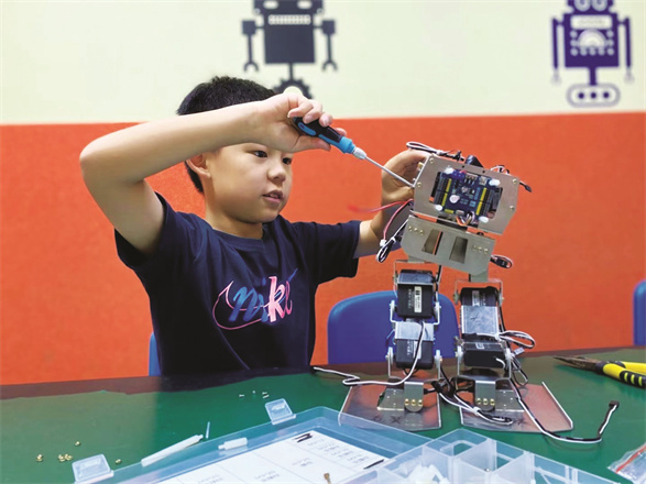 科技小达人 我是一名热爱科技创新,热爱机器人制作的小学生。在制作的过程中不仅可以操作各种有趣的设备,还可以学到许许多多知识,更是给我带来无尽的快乐。一块块铝板被我折弯、切割成标准配件,别人看着觉得很危险的打孔机我也可以操控自如,机器人的动作、语言都是我为他们编的程序。 我从一年级开始学习机器人制作,至今已经五年了,五年中我做了许多机器人,有循迹飞机、足球机器人、履带机器人、格斗机器人……2021年我的循迹小车获得合肥市“德通杯”青少年创新公开赛一等奖。2021年新冠病毒还在全球蔓延,为了避免病毒在公共场所传播,我设计了一款“可移动电梯扶手消毒机”,它是为扶手电梯设计的消毒设备,使用它可以让人们安心乘梯。这个设计不仅申请了专利,还获得了包河区科技创新大赛二等奖、“皖新教育杯”安徽省青少年科技创新大赛二等奖。 学习机器人制作给我带来了许多的成就感和荣誉,但是在制作的过程中,我也曾因为自己的不严谨把定位孔打歪,导致整个机器需要重新调整;也曾因为程序设定错误,导致机器人无法完成任务。每次犯错的同时我也在不断地反思、改变,现在的我变得更加严谨和认真了。因为我明白科技的创新很重要,但是也离不开认认真真的态度。