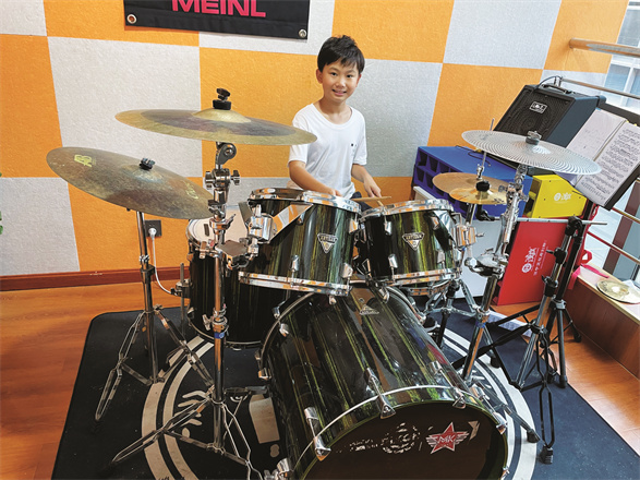 爱上架子鼓 初遇架子鼓,是在我二年级的时候。第一次看见老师打鼓的时候,我就眼前一亮,一下子就来了兴趣。但真正开始学的时候,我就遇到了问题,练架子鼓首先要手脚协调。刚开始练习的时候,我总是同手同脚,好不容易解决这个问题,又遇到了四分之一和八分之一音符踩点问题。经过老师耐心的讲解,我逐步掌握了技巧,越打越得心应手。 从开始接触架子鼓到现在已经三年了,在这期间,我们去很多地方表演过,最让我难忘的是参加安徽省架子鼓大赛。那段时间里,我每天都会拿出半天的时间来练习。到了比赛的那一天,当我走进比赛现场,看到了很多来自全省各个地方的优秀选手时,在等待上场的过程中,我突然紧张了起来,跟这么多优秀的同学们同台比拼,我既兴奋又害怕。但是,当我拿起了陪伴我这么久的鼓棒时,我突然充满了信心。我迈着自信的步伐走上了舞台,给评委们鞠了躬,坐在了我熟悉的架子鼓前,聚光灯打在了我的身上,这一刻架子鼓就是我的一切,我忘情地敲打着它。直到最后一个音符落下,台下响起了雷鸣般的掌声。这一次,我获得了安徽省架子鼓比赛的金奖。通过这次比赛,我明白了坚持了、付出了真的是有回报的。现在,我和我的架子鼓的故事还在继续,期待着我们更多的碰撞吧!