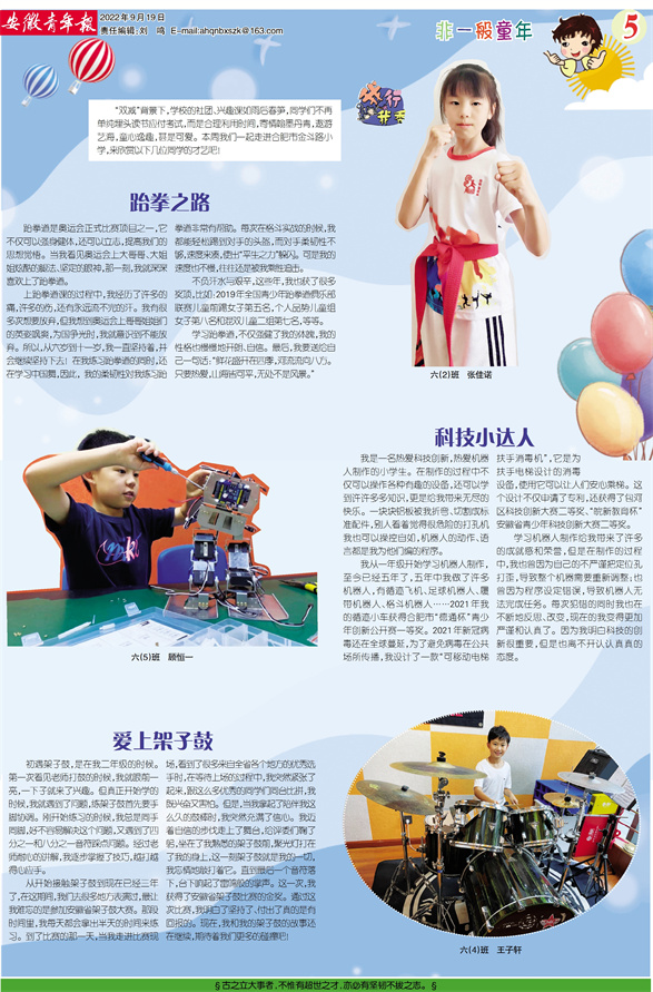 《安徽青年报·学生周刊》励志启智,开阔视野,净化心灵,陶冶情操,参与互动,集新闻性、知识性、趣味性、互动性为一体,是小学生成长的良师益友、参与互动的平台、沟通老师家长的纽带。