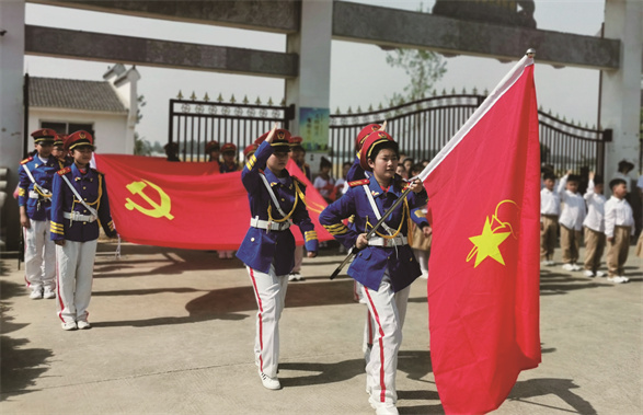捡起掉落在地上的党旗,轻轻拂去上面的灰尘,小心地叠好,随后交给交警叔叔……近日,淮北市第二实验小学出了个小名人,他就是二年级学生孙一凡。在中国少年先锋队建队73周年之际,他用实际行动传递出浓浓的爱国情怀,成为了同学们眼中的“大人物”。这也是淮北市第二实验小学通过庄严的仪式、新颖的活动,引导少先队员坚定理想信念、厚植爱国情怀、传承红色基因的一个写照。