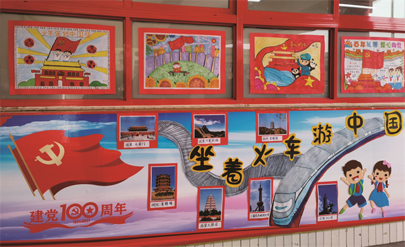 “经过精心策划,将中国共产党成立100周年重大事件制成彩绘图和知识板,布置在教室中,学校46间教室变成一个个‘迷你党史馆’。”该校少先队大队辅导员周璟岩有一种使命感,“这也是中队文化建设的具体体现,在潜移默化中引领广大少先队员学习百年党史,让红色文化成为学校每一位师生的成长动力。”