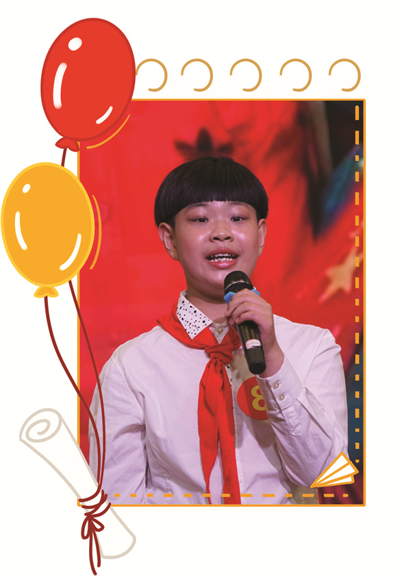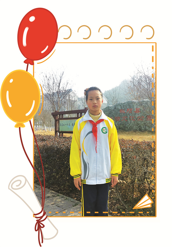 赵展颜,少先队大队长。她积极传承红色基因,奋力争当新时代好队员。在学习中,赵展颜尊敬师长、热爱集体、勤奋刻苦,成绩名列前茅;在生活中,她胸怀家国情,热心公益、无私奉献,是大家公认的爱心小使者、雷锋式的好少年。