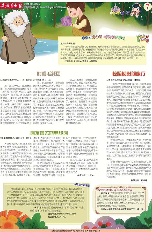有一个叫做佐伊的男孩,他好吃懒做。佐伊的爸爸为了锻炼他,让他去家里的店铺帮忙,可他嫌弃干活累,还埋怨起父母。被爸爸教训了的佐伊伤心地跑到河边许愿,说希望自己可以变成一个大人。这时,他碰见了一个神秘的时间老人。老人递给了佐伊一个毛线团,告诉他想去什么年纪可以随便抽,但是要记住抽出的毛线就不能再团回去了。禁受不住诱惑的佐伊开始不断地抽起毛线团……请你根据提示,展开想象的翅膀,自拟题目写一篇文章,字数500字以上哟!
