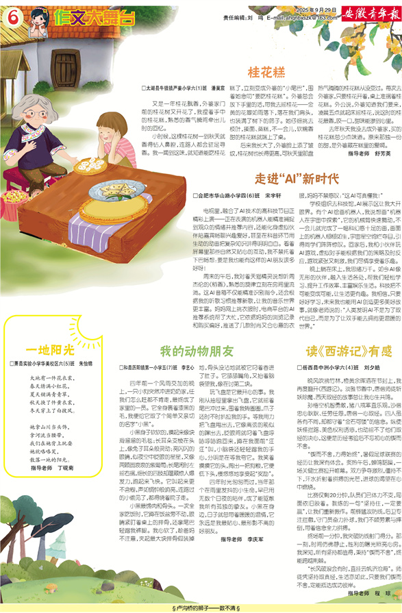 《安徽青年报·学生周刊》励志启智,开阔视野,净化心灵,陶冶情操,参与互动,集新闻性、知识性、趣味性、互动性为一体,是小学生成长的良师益友、参与互动的平台、沟通老师家长的纽带。