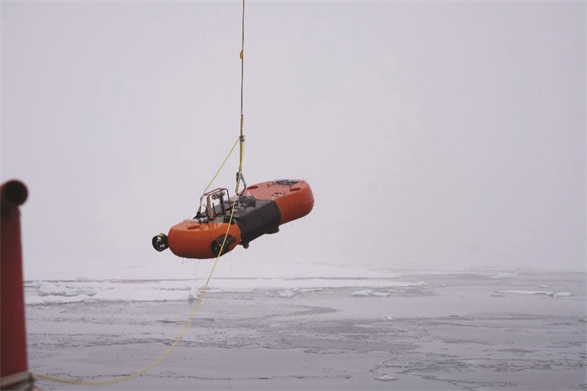 我可不是普通机器人!我有两种超酷的运动模式,水下巡游时像小鱼一样灵活穿梭,遇到冰面障碍时又能切换成爬行模式,像青蛙一样稳稳“行走”。我背上的“科技背包”里藏着好多宝贝:CTD传感器能测水温盐度,多波束声呐能画冰底地形图,双目摄像头能拍高清视频。在低密集度冰区和高密集度冰区两次下潜中,我都稳定工作,成功把冰底的“秘密”都记录下来啦!